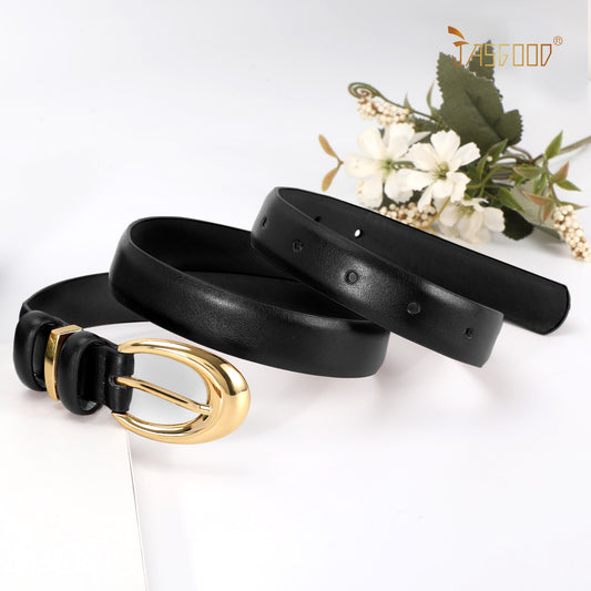 JASGOOD Women Leather Belt for Jeans Pants Fashion Ladies Faux Leather Belt with Gold Buckle