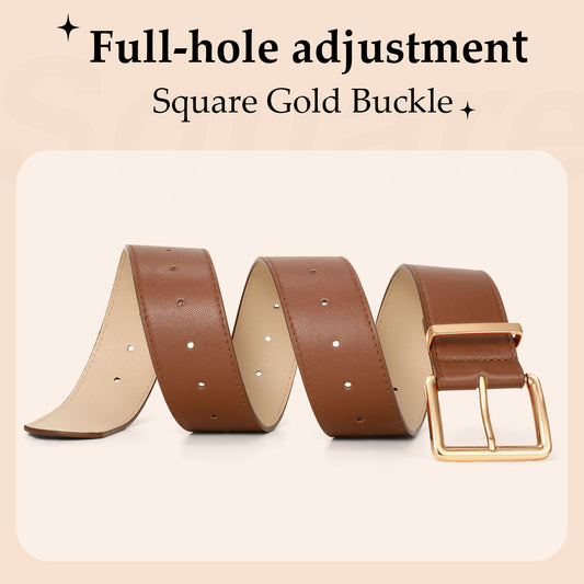JASGOOD Women Leather Belt for Jeans Pants Fashion Ladies Faux Leather Belt with Gold Buckle