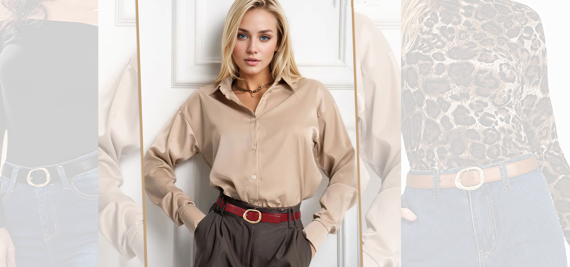 JASGOOD Women Belts for Jeans Pants Dresses Ladies Leather Belt Fashion Waist Belt with Liquid Shapes Gold Buckle
