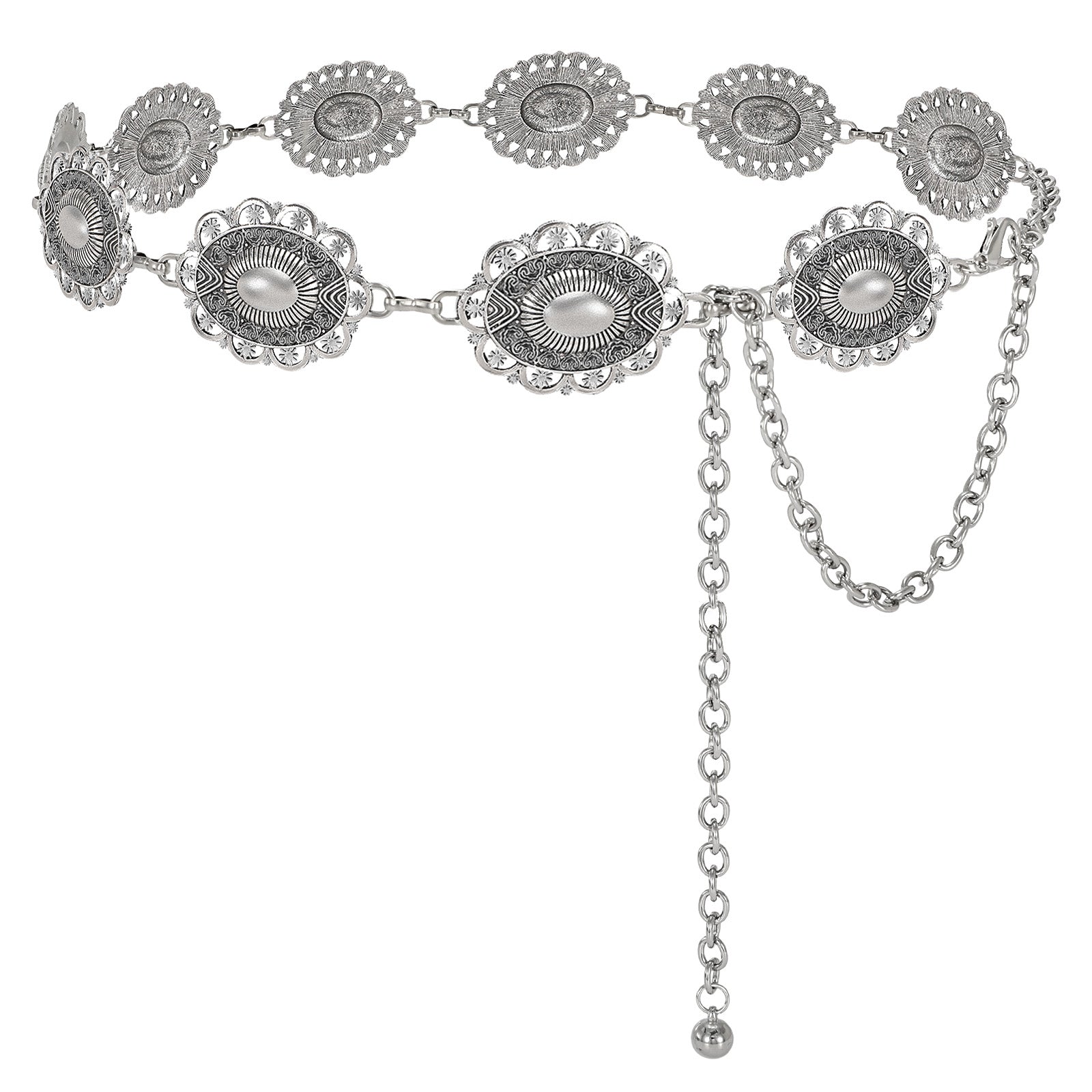 - Western Concho Belt: XZQTIVE’s oval metal chains for jean pants are made of high-grade matte alloy that does not get dented and scratched easily, this boho cowgirl waist chain belt is carved with mysterious ancient designs and patterns,look stylish and beautiful, add bright spot on your daily jean and dress