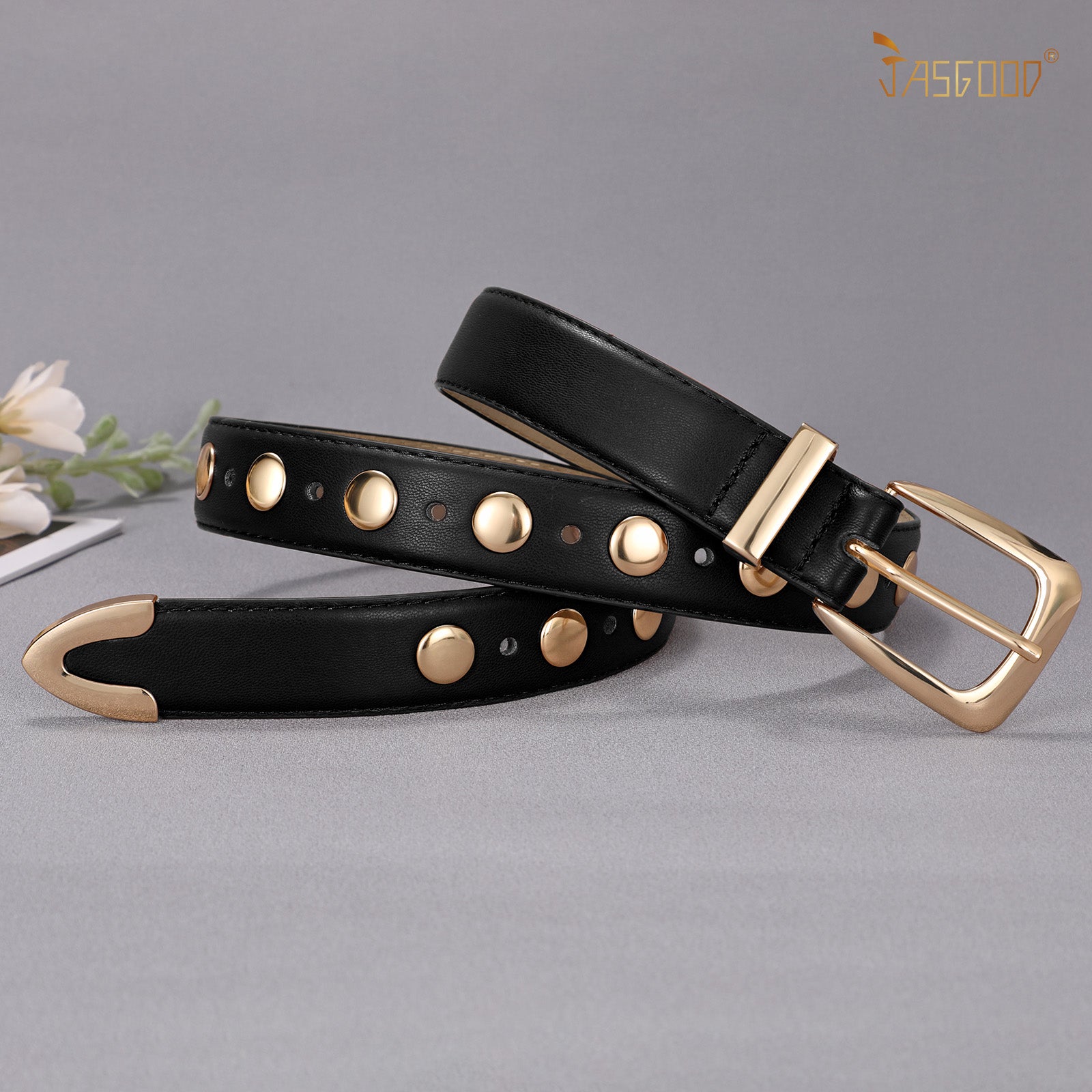 JASGOOD Women Leather Belt Fashion Studded Belt Ladies Punk Belt Vintage Leather Belt for Jeans Dress