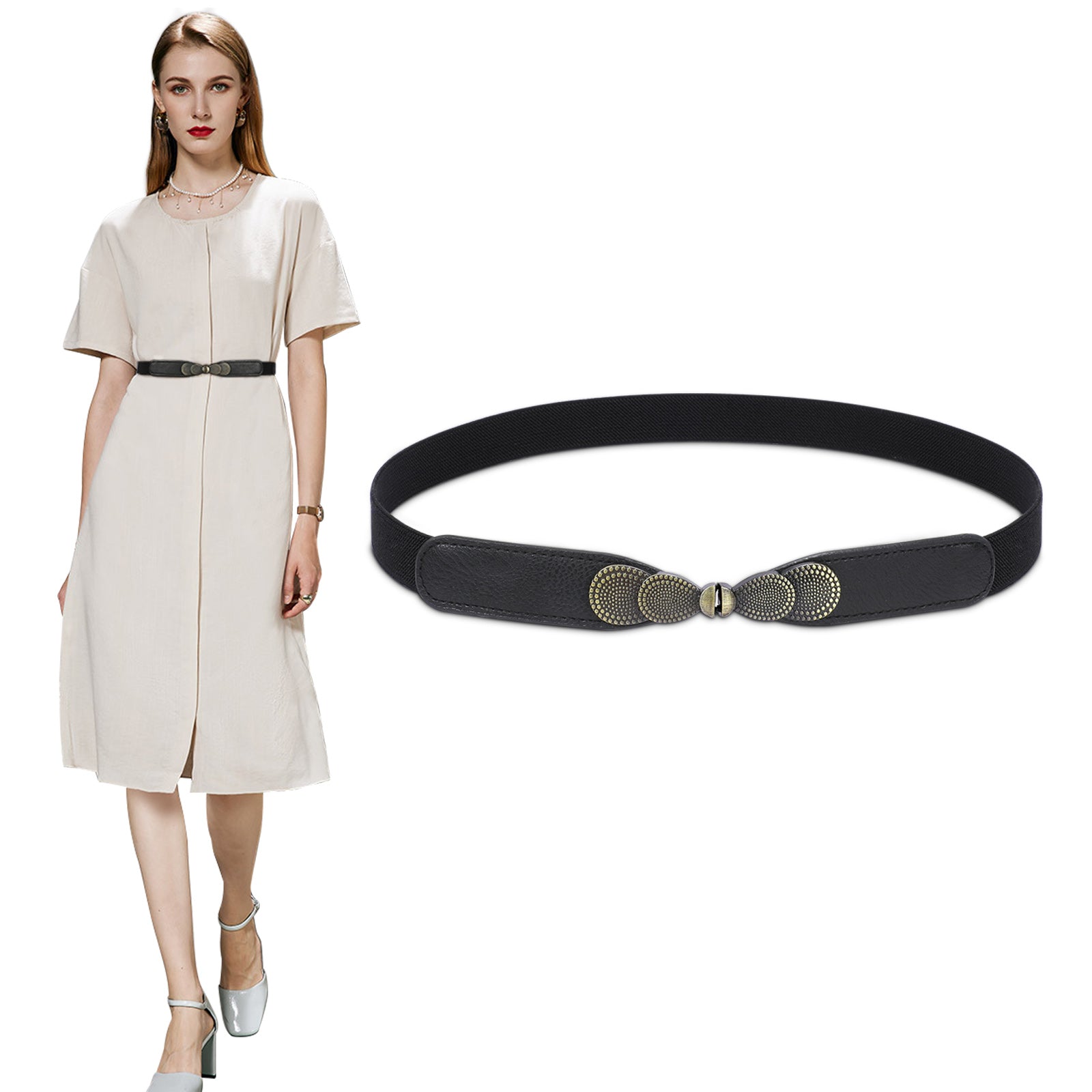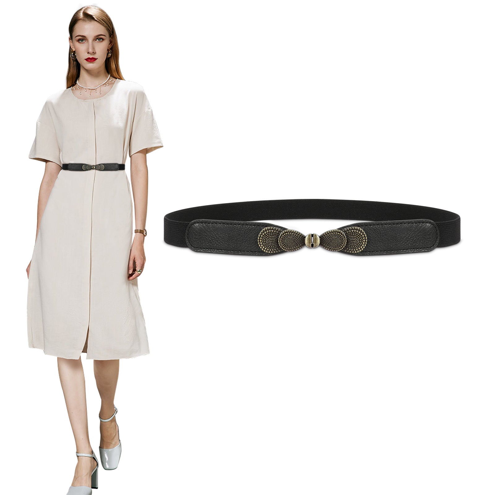 - 💮 Fashion Accessory Item: It’s perfect for all women dresses, sweater,shirt, blouse. Shape your waistline by our stretch thin belt. A wonderful item in your closet. And also perfect as a gift for your beloved person during festival.