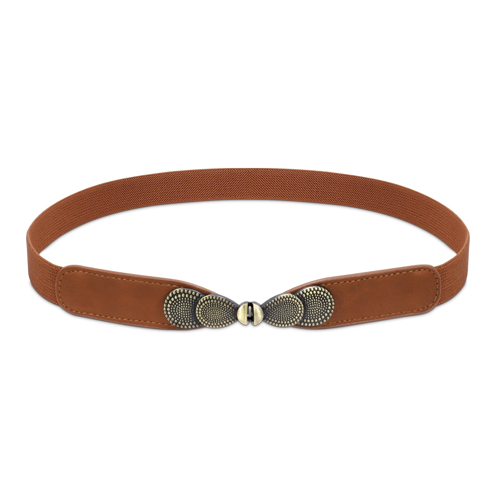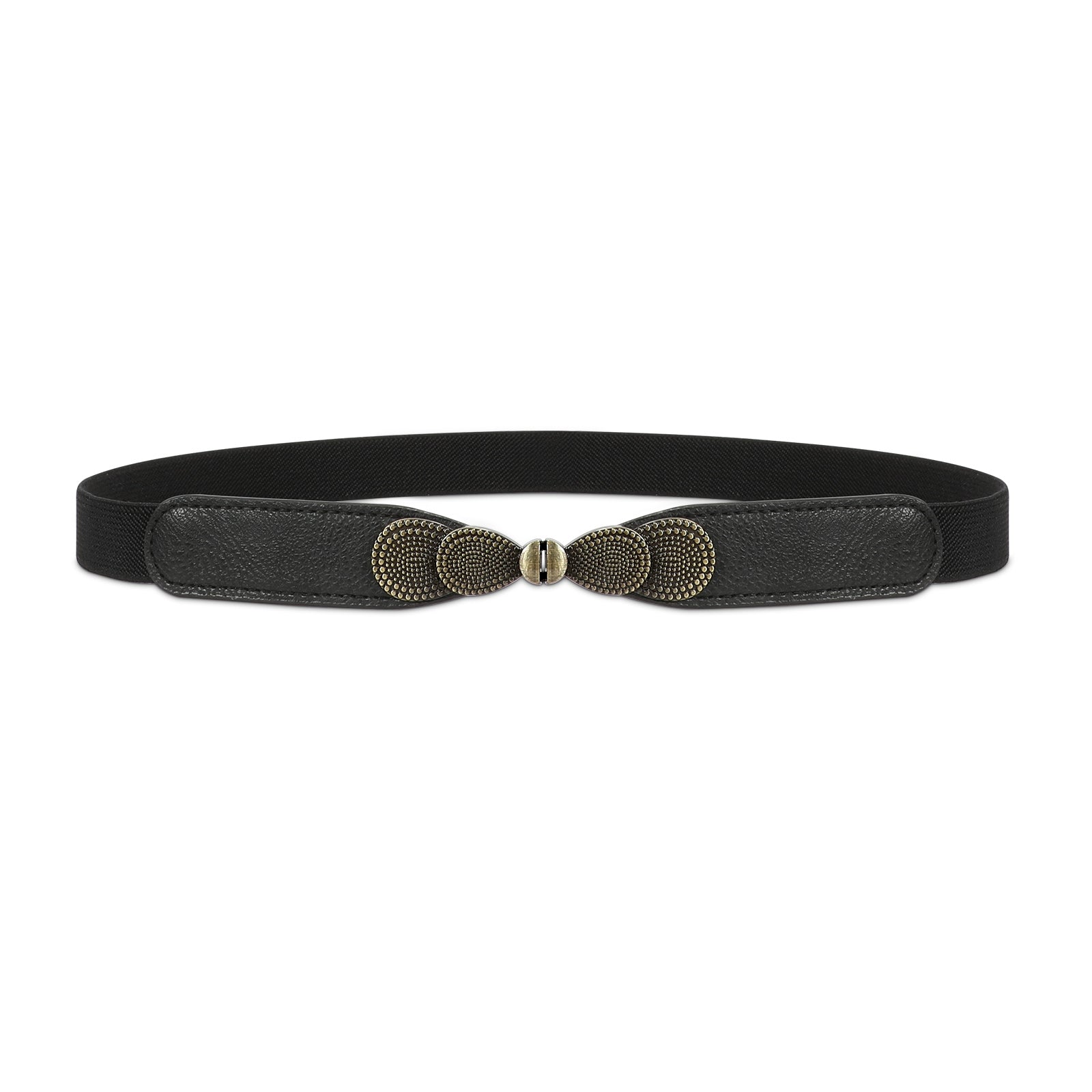 - 💮 Retro Metal Buckle: This skinny stretch belt use 3 different metal buckles. Silver buckle, golden buckle and retro brass interlocking buckle. It is easy to put on and off. Every buckle has it’s it’s unique design.